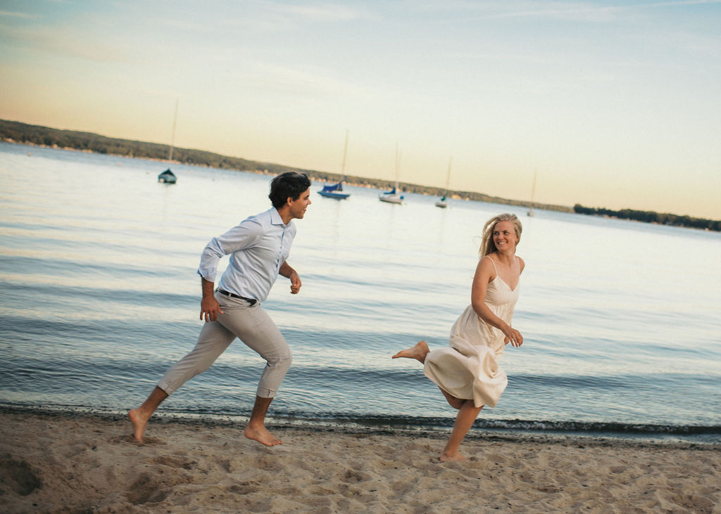We started the session at their favorite local restaurant, 2 Ames, for some quick drinks. We then began walking the quaint brick streets of Chautauqua Institution and taking photos along the way. We ended the session right along Chautauqua Lake, with lots of laughter and running in the sand.